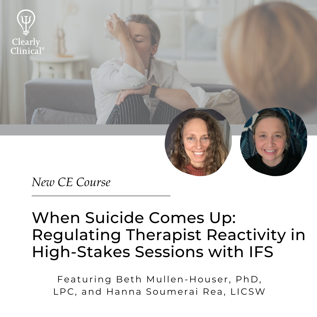 In our newest Clearly Clinical podcast episode and CE course, Beth Mullen-Houser, PhD, LPC, and Hanna Soumerai Rea, LICSW, explore therapist reactions to suicide talk through the lens of research and Internal Family Systems informed practice. The central question is not simply how to assess suicide risk, but how our own internal responses shape what happens next.